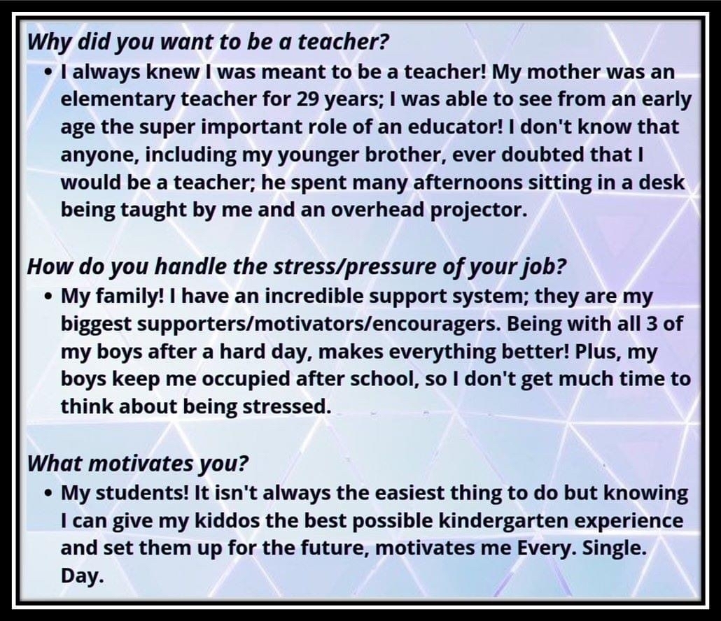 Meet kindergarten teacher, Melissa Arnold, as she is spotlighted at Kilpatrick! Not only does Mrs. Arnold bring a wealth of knowledge in the world of education, but she also models expectations for her scholars as well as her colleagues!